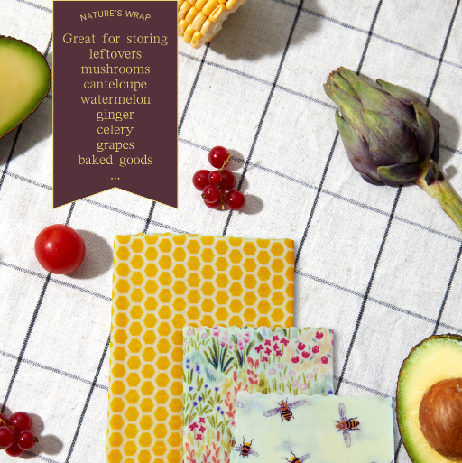 Beeswax Food Wraps are a great alternative to single use plastic film. Simply use the warmth of your hand to shape it over your food, bowl or plate.